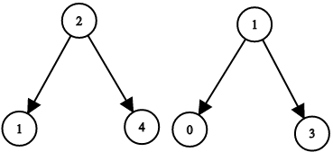Input: root1 = [2,1,4], root2 = [1,0,3], target = 5