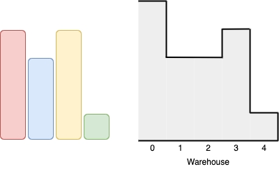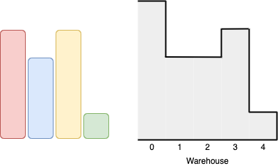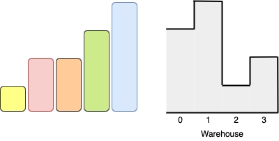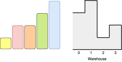 Notice that it's not possible to put the box of height 4 into the warehouse since it cannot pass the first room of height 3.