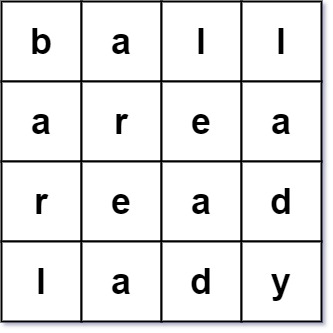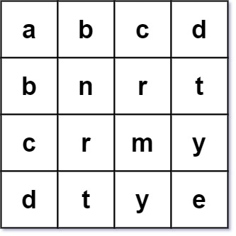 Input: words = ["abcd","bnrt","crmy","dtye"]