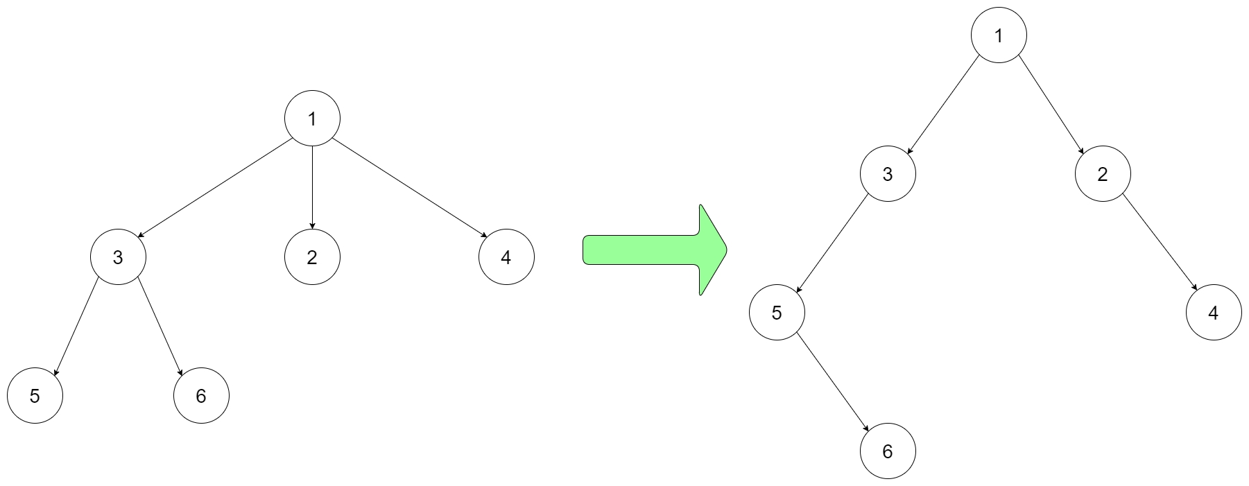 For example, you may encode the following 3-ary tree to a binary tree in this way: