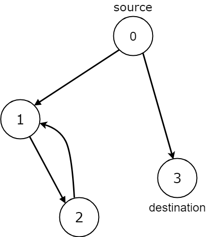 Explanation: All paths from the source node end at the destination node, but there are an infinite number of paths, such as 0-1-2, 0-1-1-2, 0-1-1-1-2, 0-1-1-1-1-2, and so on.Last updated