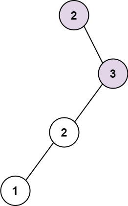 Explanation: Longest consecutive sequence path is 3-4-5, so return 3.Input: root = [2,null,3,2,null,1]