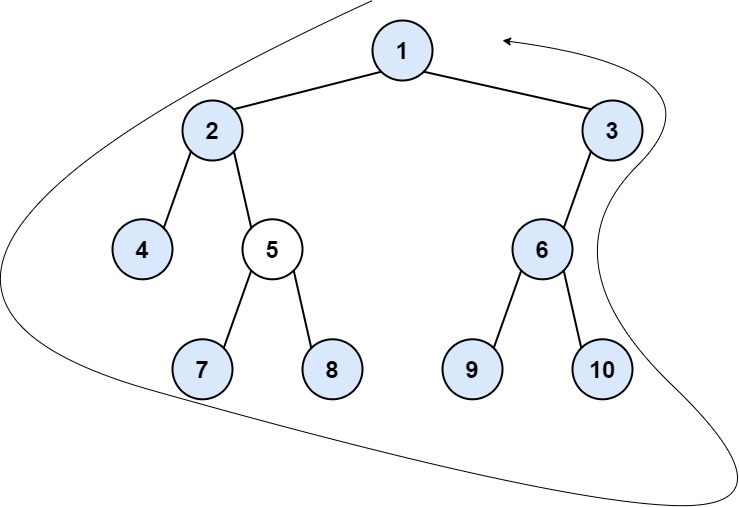 - The right boundary follows the path starting from the root's right child 2 -> 4.